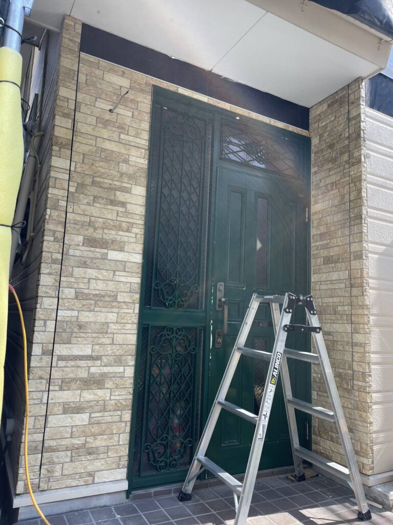 この玄関周りのサイデイングの外壁を新しく張り替えます!
