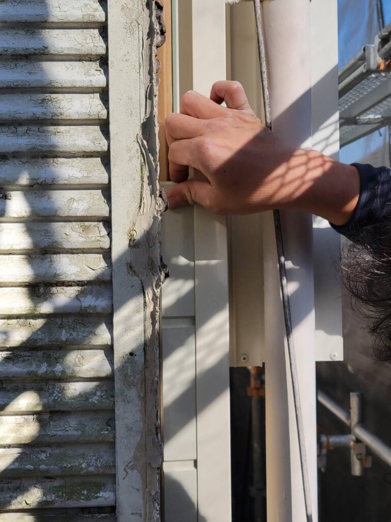 この部分にも外壁があるためキチンと出隅コーナーに合うかどうか確認しています!
