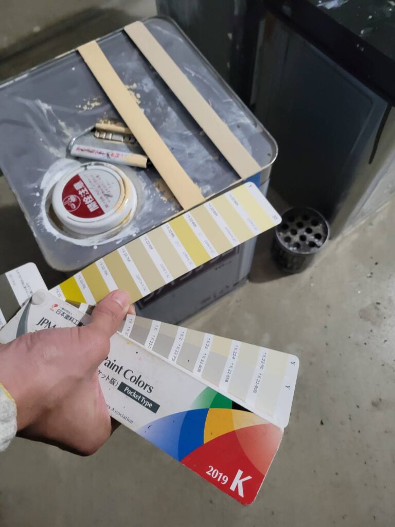色見本と照らし合わせ、色番号を確認しながら塗料メーカーへ材料を発注しました!