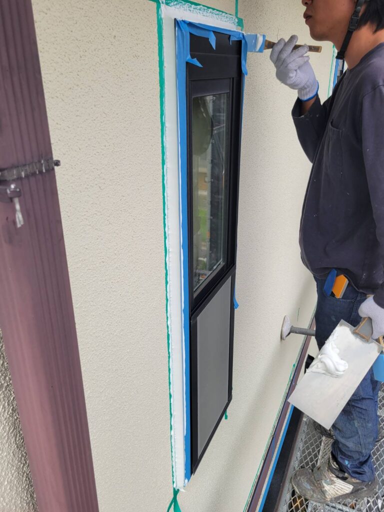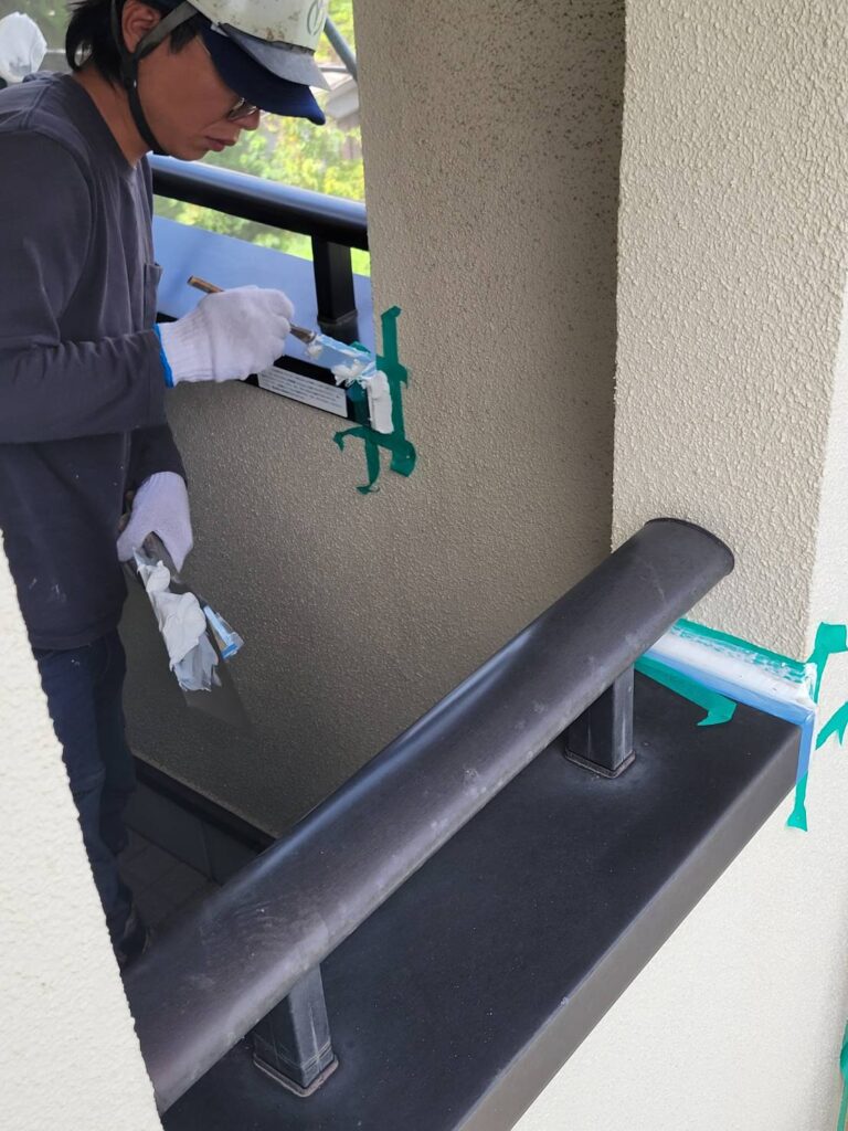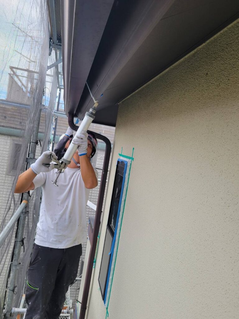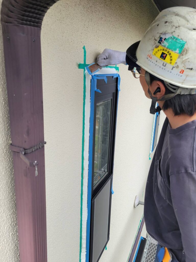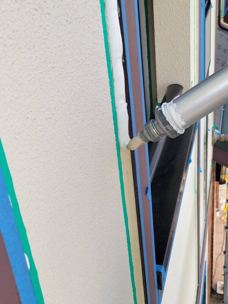 コーキングを撤去した場所にコーキング剤を充填してヘラで整えるという大事な工程に入ります!