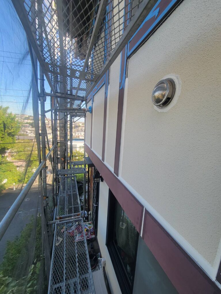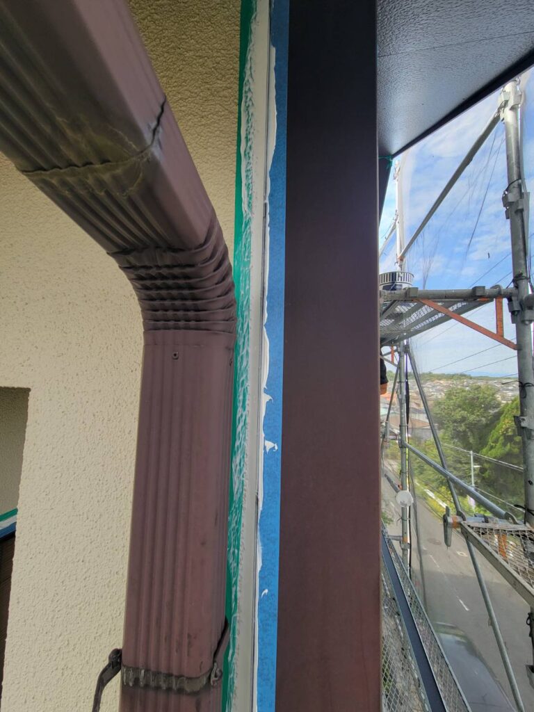 縦樋の裏側なども施工します。