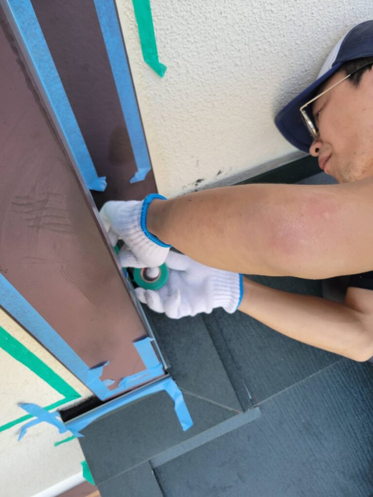 雨押え板金の隙間にもコーキング剤を打ちます!