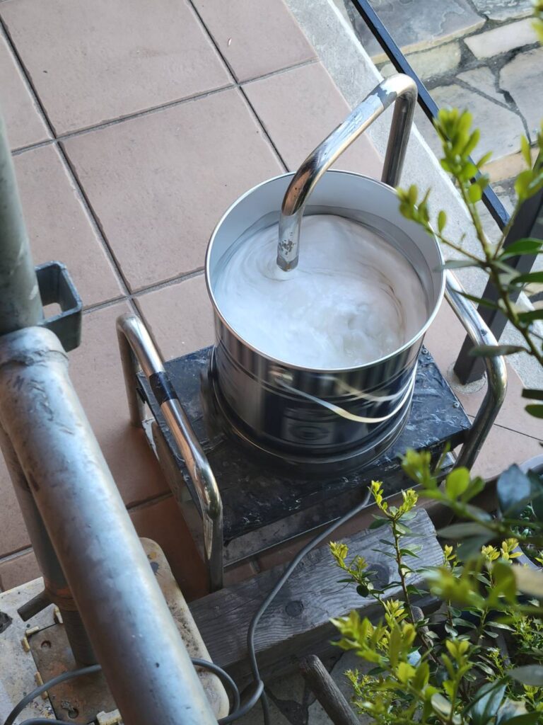 コーキング剤は硬化剤を入れないと効果が発揮されないので硬化剤を入れて機械で攪拌させます。