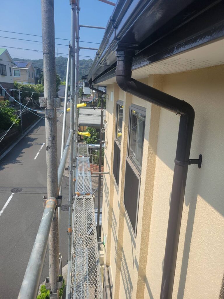 今回は外壁の上塗り塗装の施工が終わりましたので、次はシャッターボックスや縦樋の続きをやっていきます!