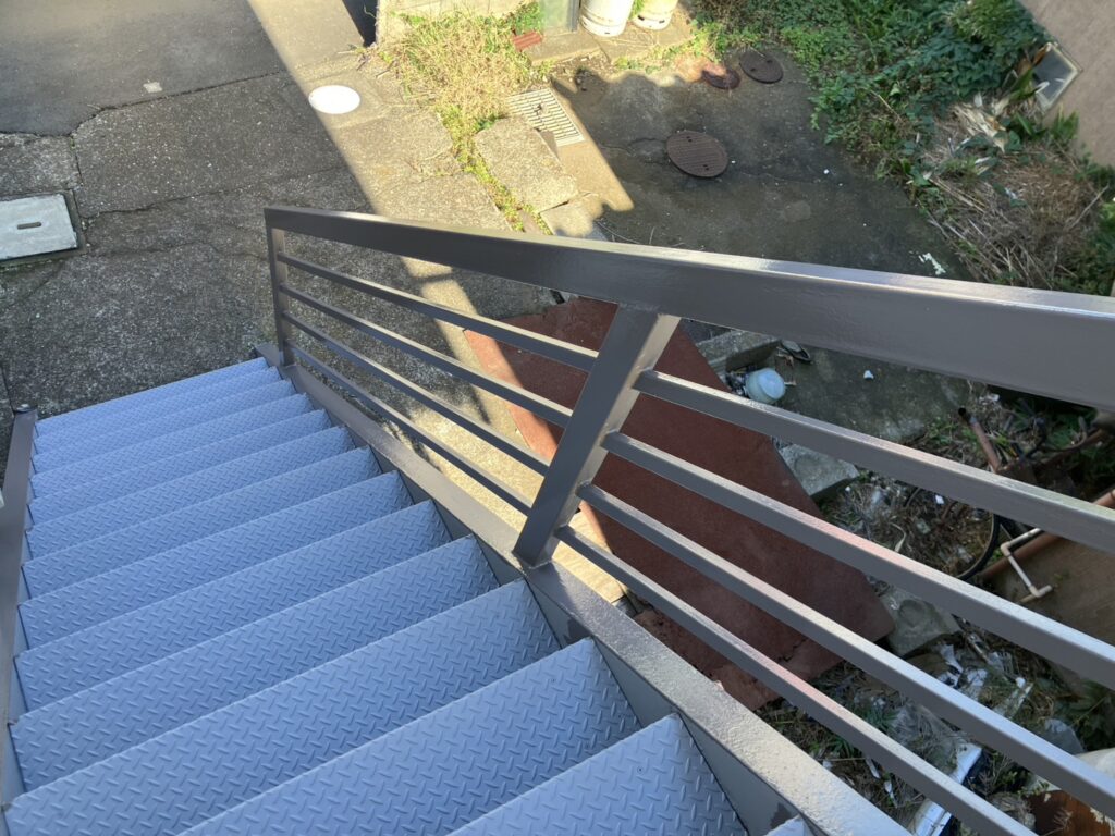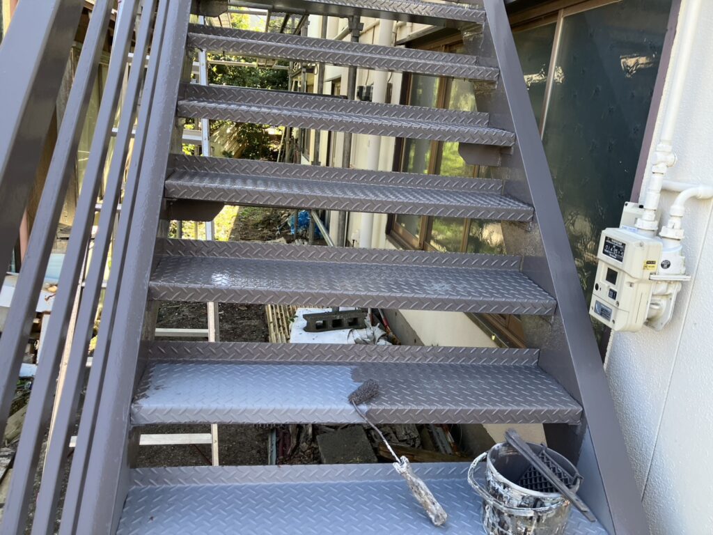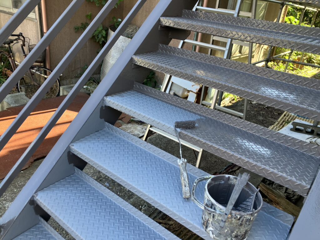 横須賀市三浦海岸のアパートにて鉄骨階段の塗装をしています!
