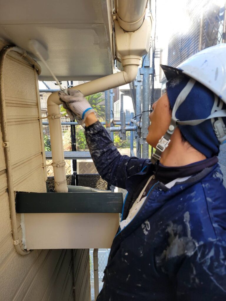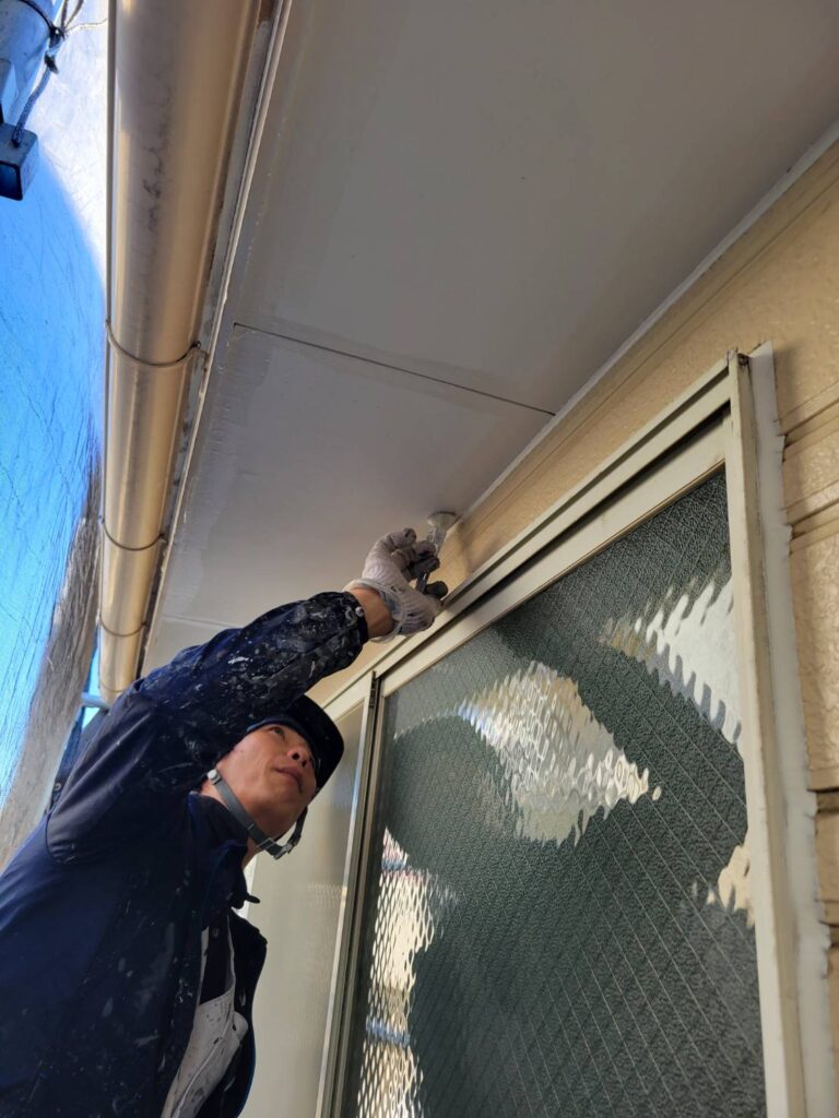 前回、屋根の下塗り施工をしたので乾燥させている間に続けて、今回は軒天の塗装を進めました!
