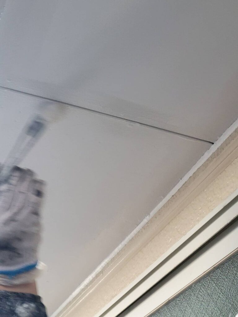 軒天はサッシまわりや角が多く、ローラーだけでは仕上げられません。