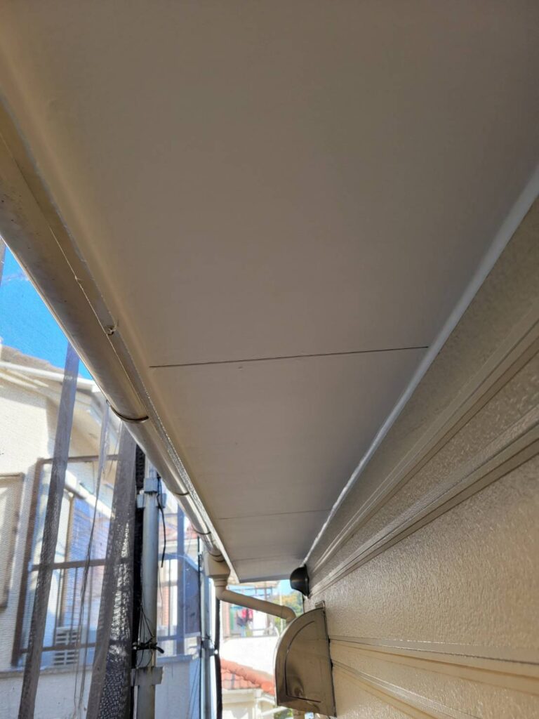 仕上がった軒天はムラもなく、白さが際立ちます!