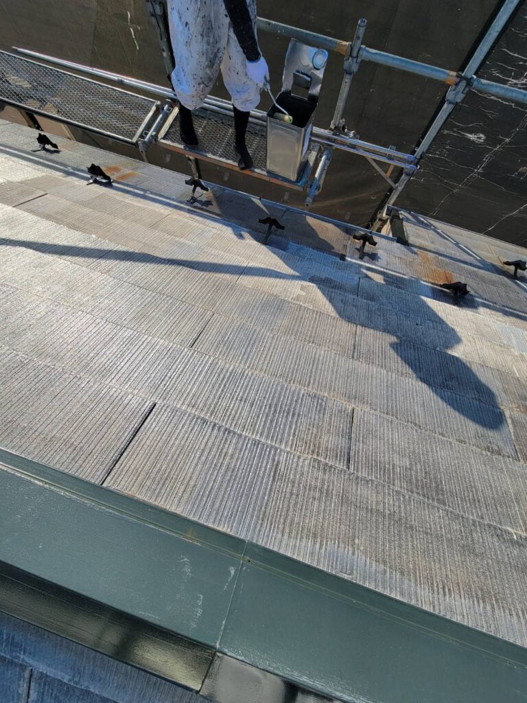 屋根に下塗り材のシーラーを塗布していきます!