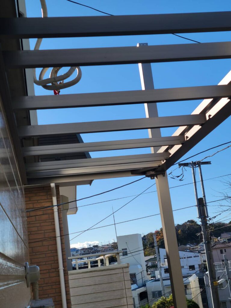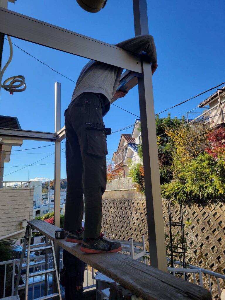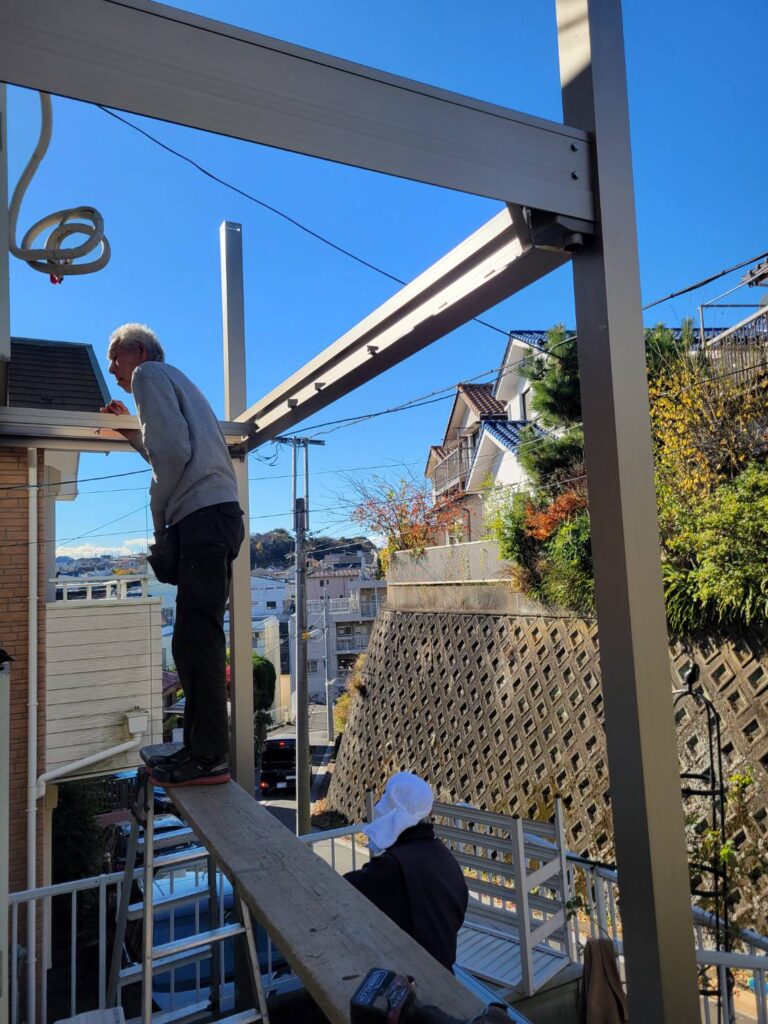 前回から続く業者さんによる、新規ベランダの取り付け工事が本格的に進み始めました!