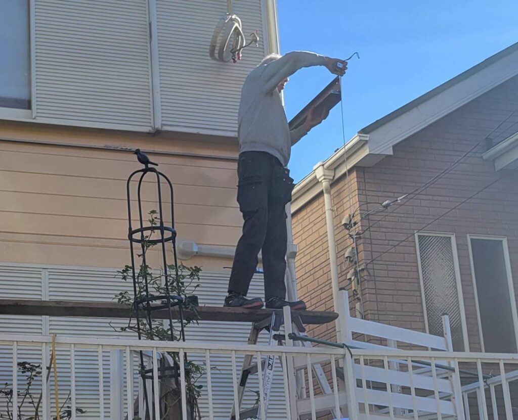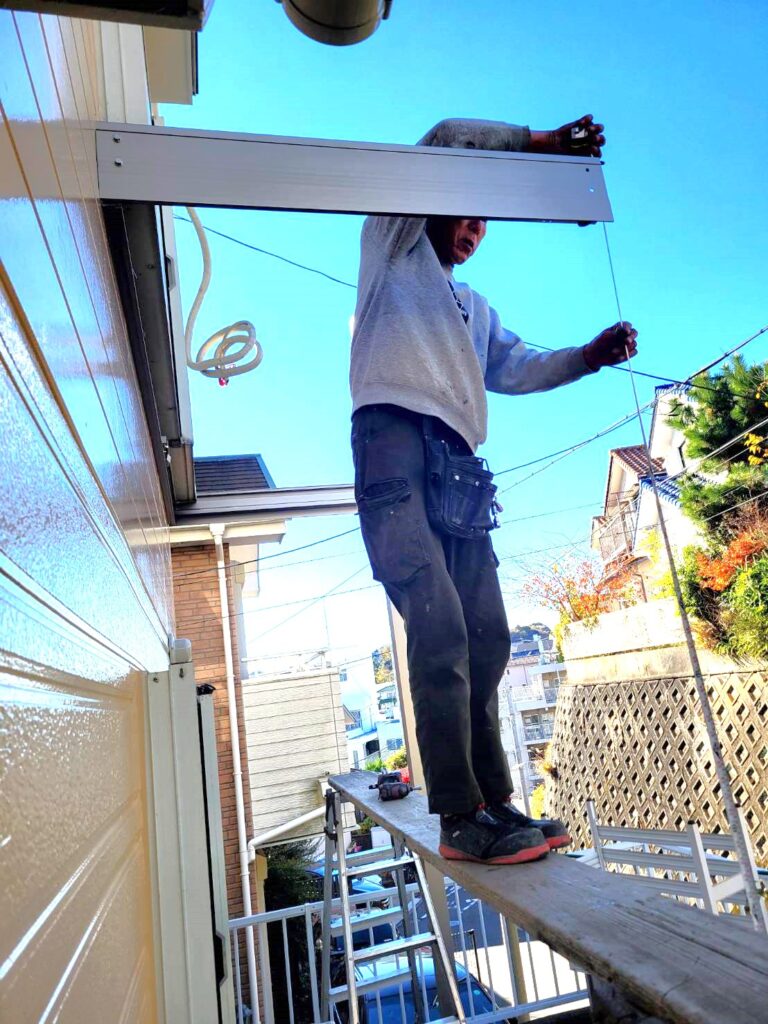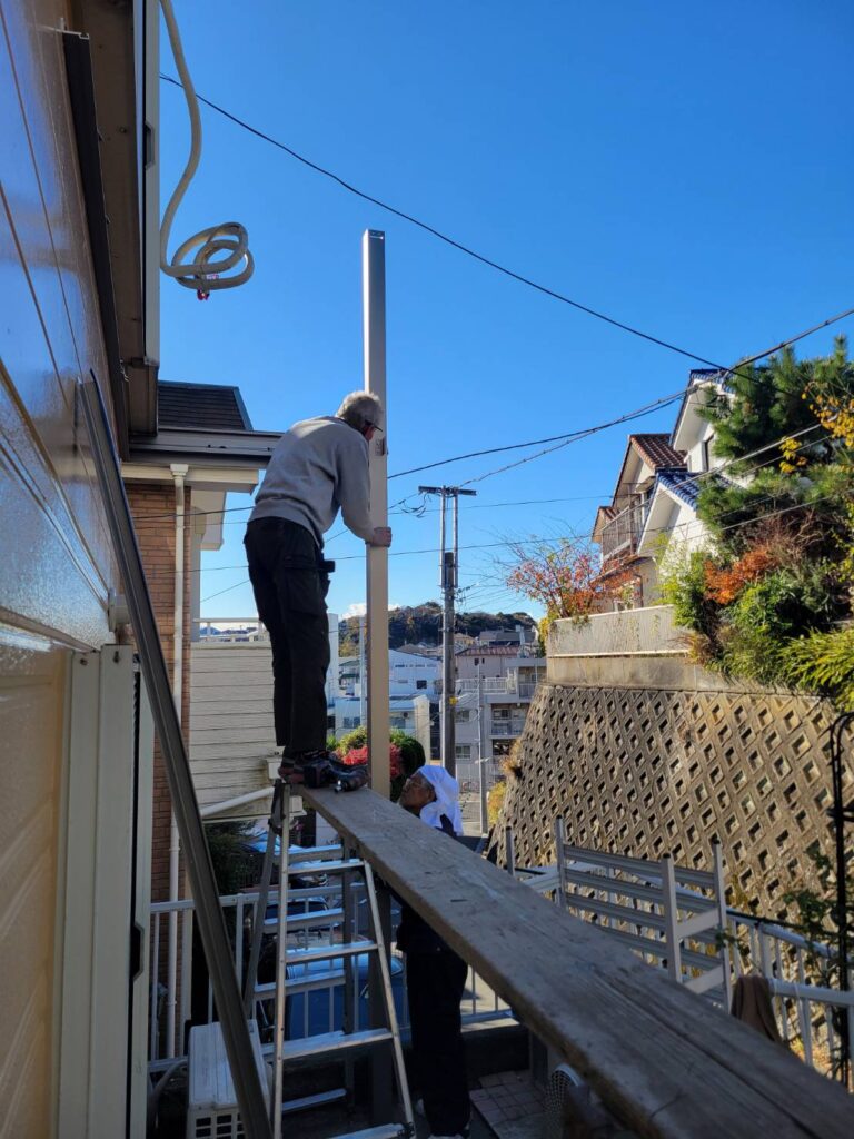 足場の解体が終わり、いよいよ外壁塗装に続く仕上げ工程としてベランダの新規取り付け工事が始まりました!