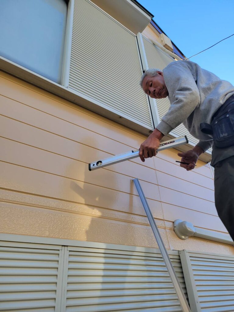 写真では、職人さんが水平器を使いながら丁寧に位置を確認し、ズレのないように固定していく様子が映っています!