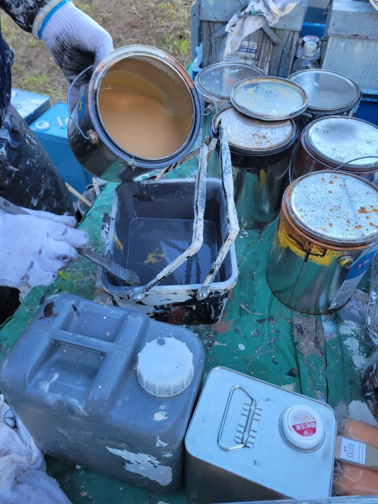 今回は調色作業までを完了し、次回はいよいよ擁壁への試し塗り施工へと進んでいきます。