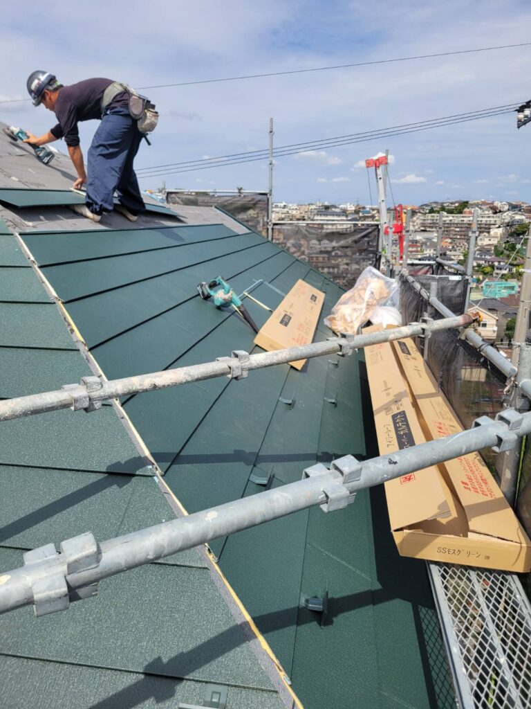 さて、屋根・カバー工法の施工も大分作業に終わりが見えてきました!