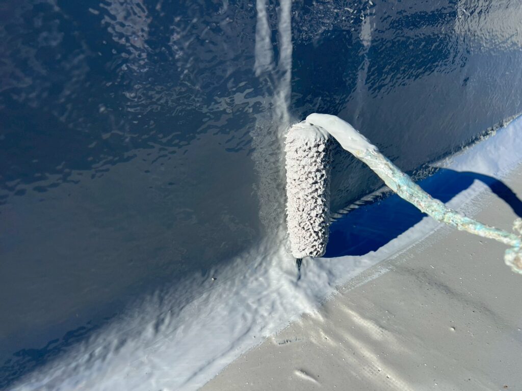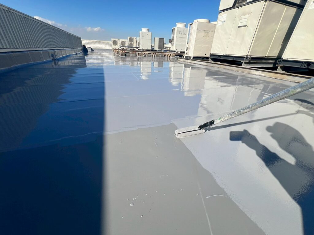前回までの工程を経て、今回はウレタン防水の二層目施工を行いました!