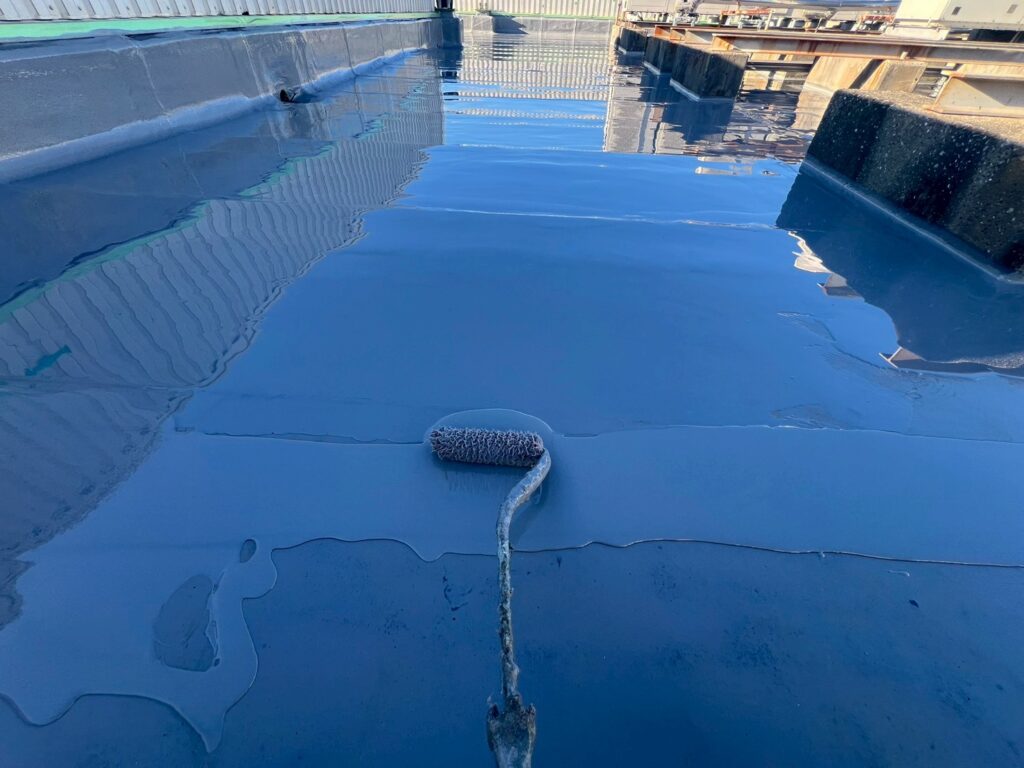 今回は、ウレタン防水の仕上げとなるトップコート施工の様子をご紹介します!