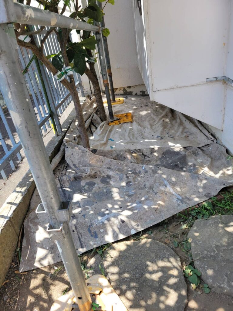 ペンキの跳ねそうな箇所には念入りにシートを敷いてます!