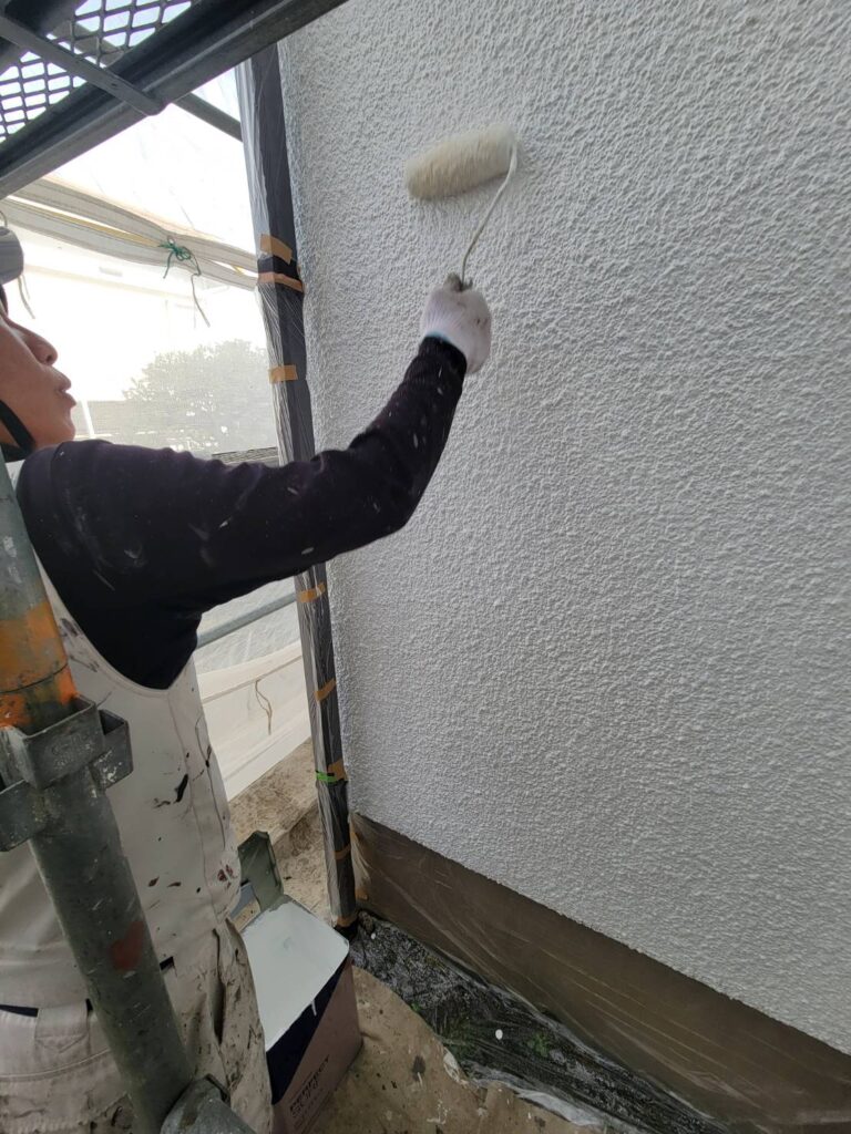 ローラーを使って塗装を進めていき、外壁が少しずつ白く染まっていきます!
