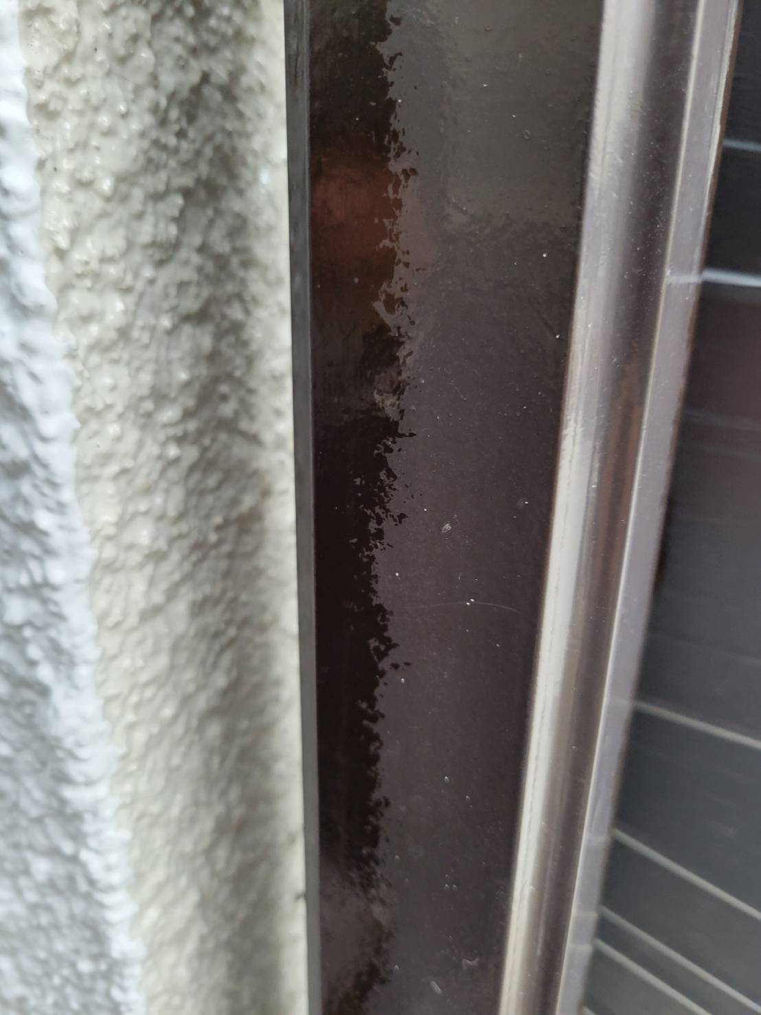 あらかじめ塗りにくい縦樋の裏などの細かな部分は先行して塗装を行い、養生をしたうえで作業に入っています!