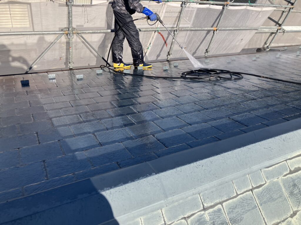高圧洗浄が完了すると、次は下地処理から屋根塗装・外壁塗装の工程へと進んでいきます!