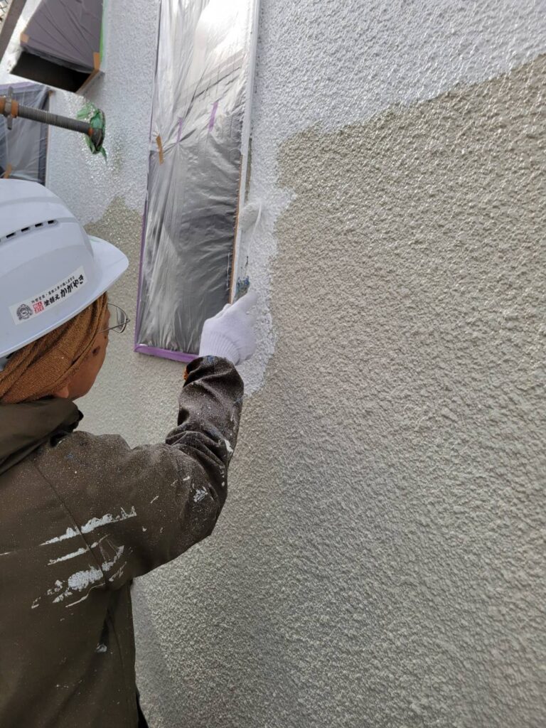 今回は、別の面の外壁を2人体制で中塗り施工しました!