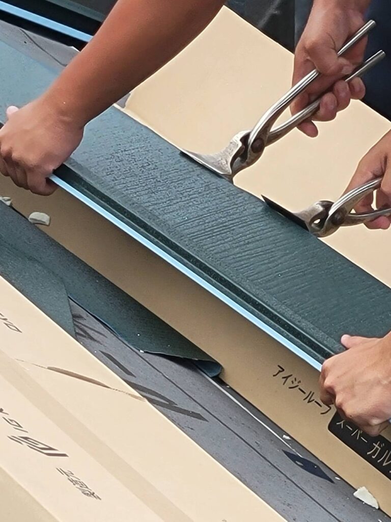 前回、役物の取付が終わったので今度は屋根材を付けていきます!
