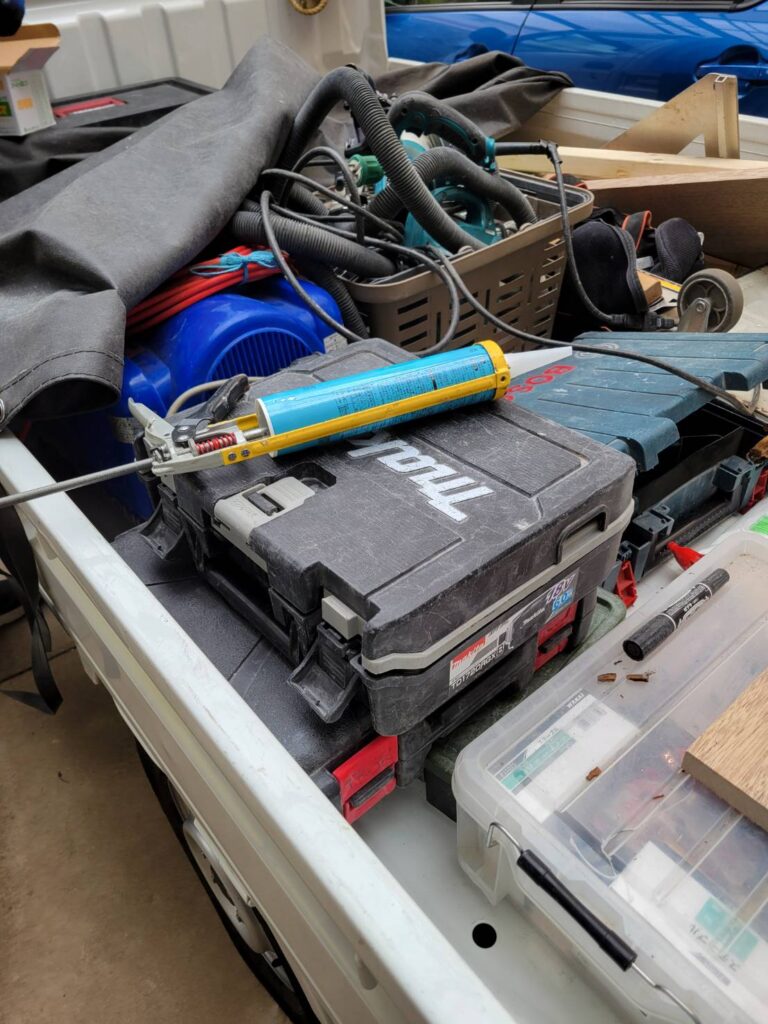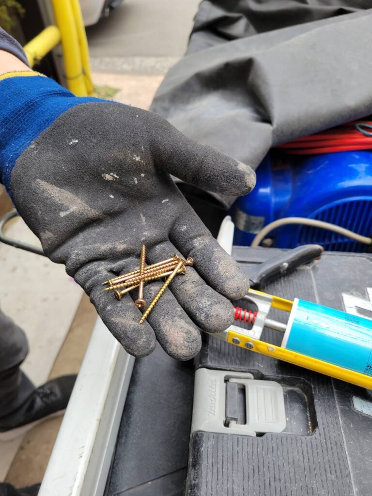 材料、コーキング剤、釘を準備し、取り付けへ!