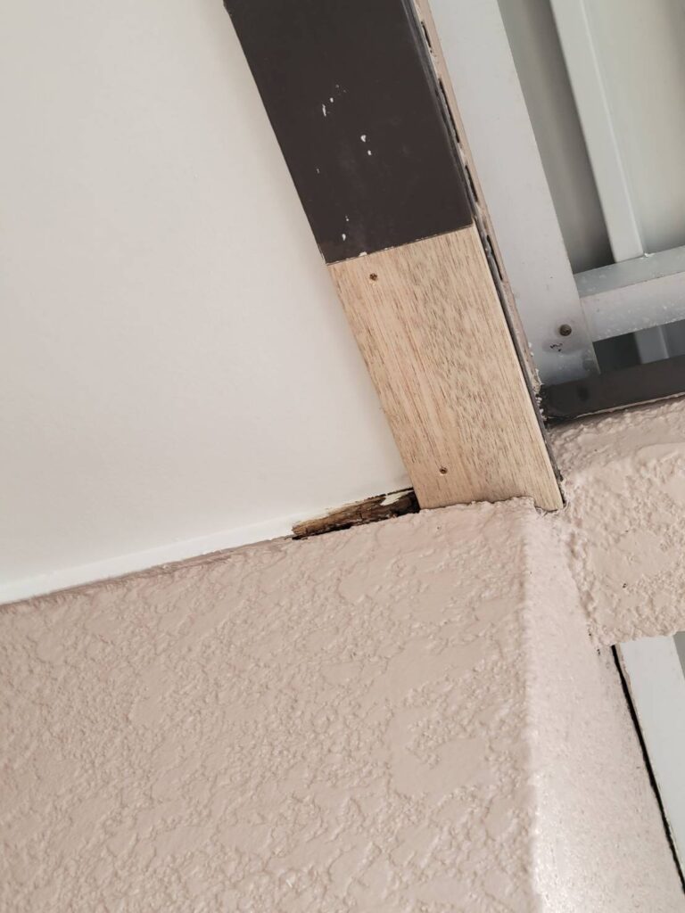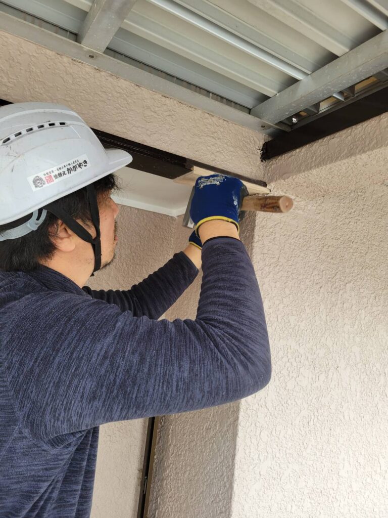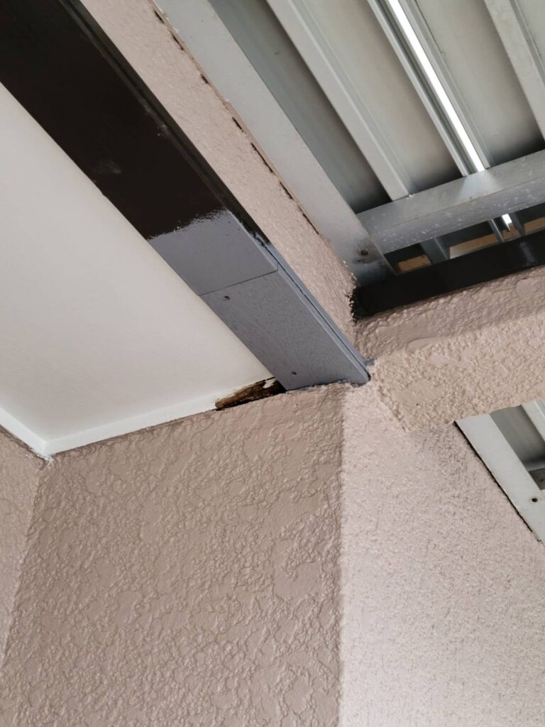 今回の施工は、ベランダ下軒天木見切り材の部分交換工事です!