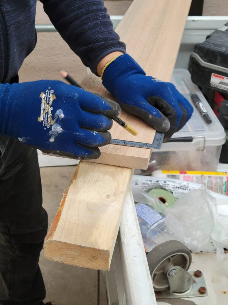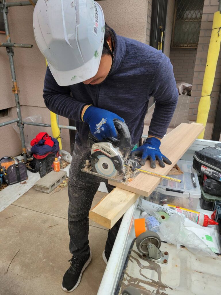 次に、撤去した寸法を正確に測り、新しい羅盤材を同寸でカット!