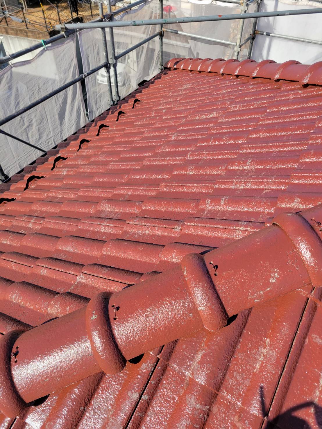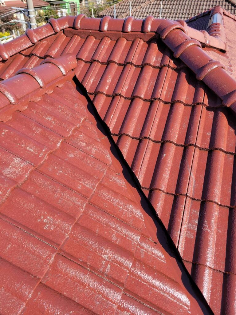 コンクリート瓦は年数が経つと表面が劣化し、塗料を強く吸い込んでしまう状態になりやすいため、下塗りでしっかりと下地を整えることがとても重要になります!