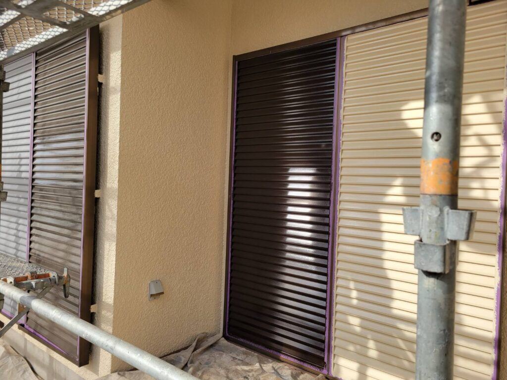 今回は能見台の住宅街にて、雨戸の試し塗りを行いました!