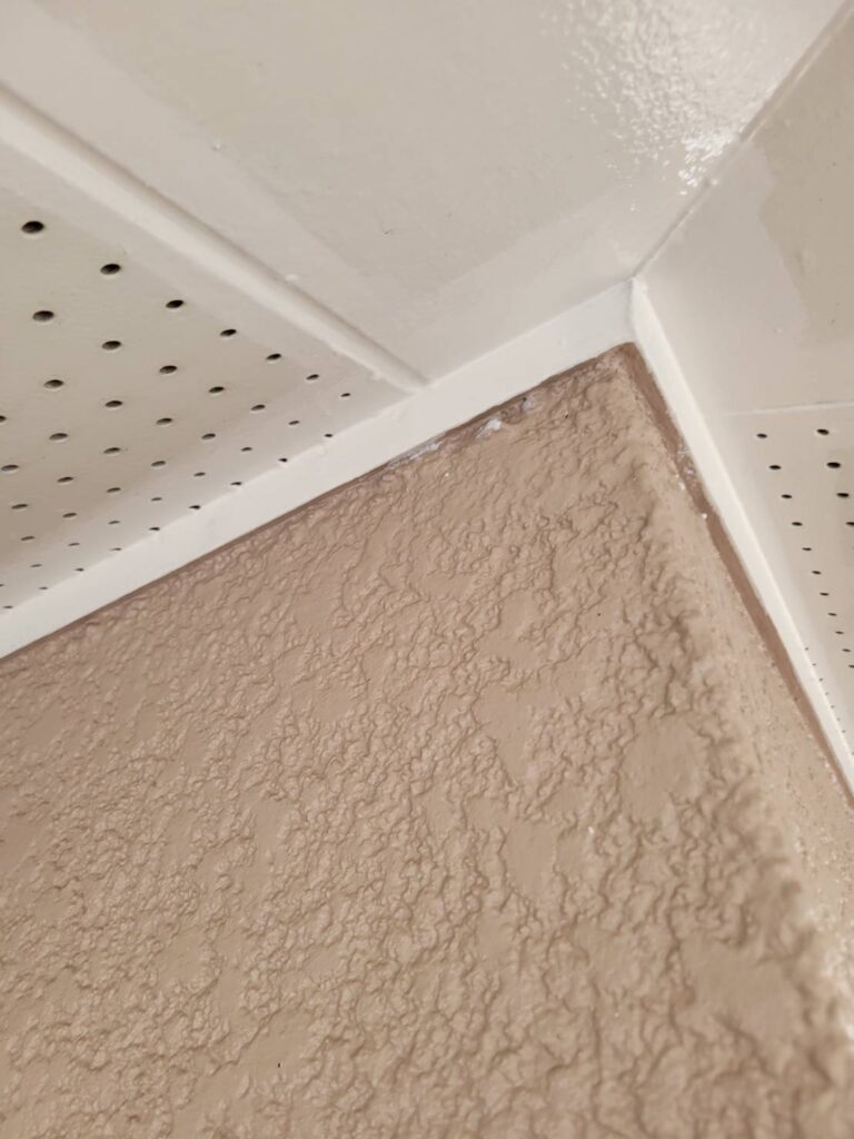 外壁と天井の境目や、細かく入り組んだ部分はローラーではどうしても塗りきれないため、先に刷毛を使って塗装していきます!