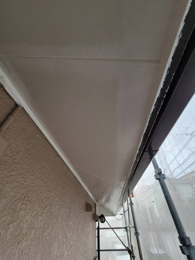 軒天まわりは破風や外壁など他の部材とも絡んでくるため、後の工程を考えると先に刷毛で塗装しておいた方が仕上がりがきれいになります!