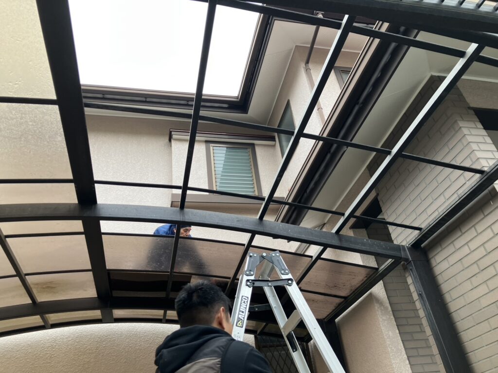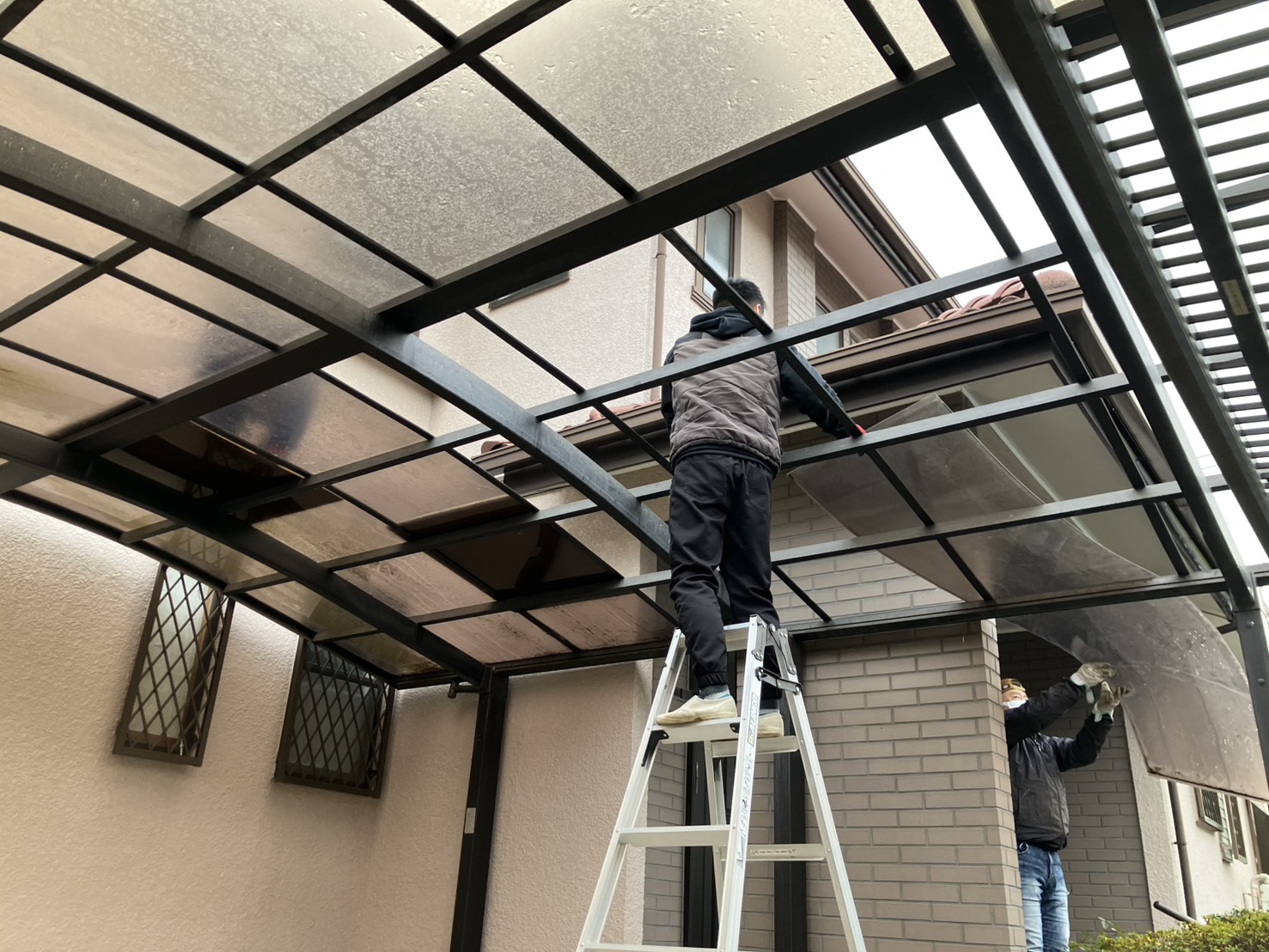 能見台の住宅街にて施工!足場を立てるためカーポート屋根を事前に撤去します!