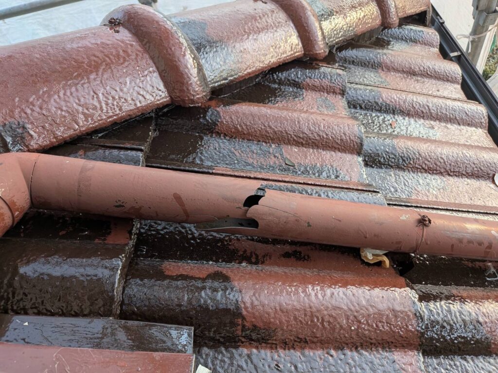 雨水が途中から漏れ出し、外壁に伝い、汚れや苔の原因になってしまいます!