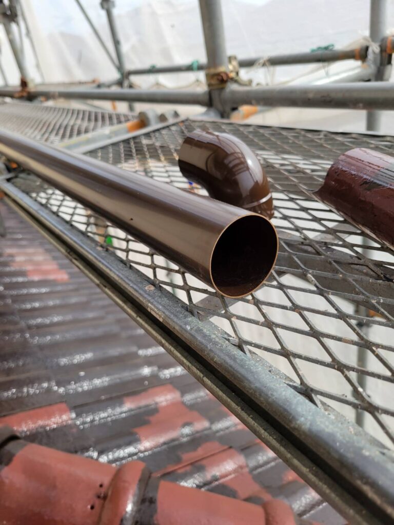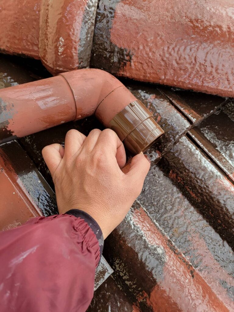 ジョイントを取り付け、縦樋を差し込み、再び曲がりジョイントへ。