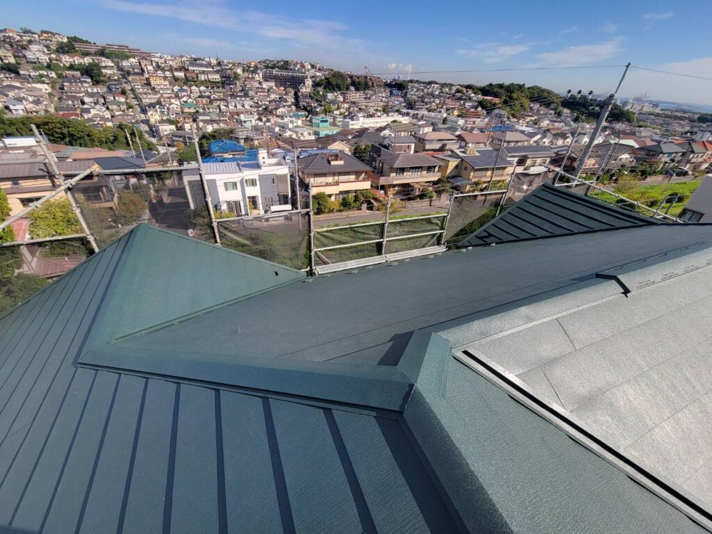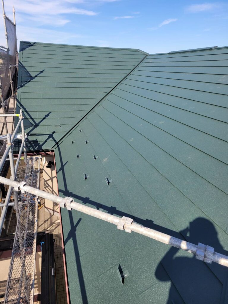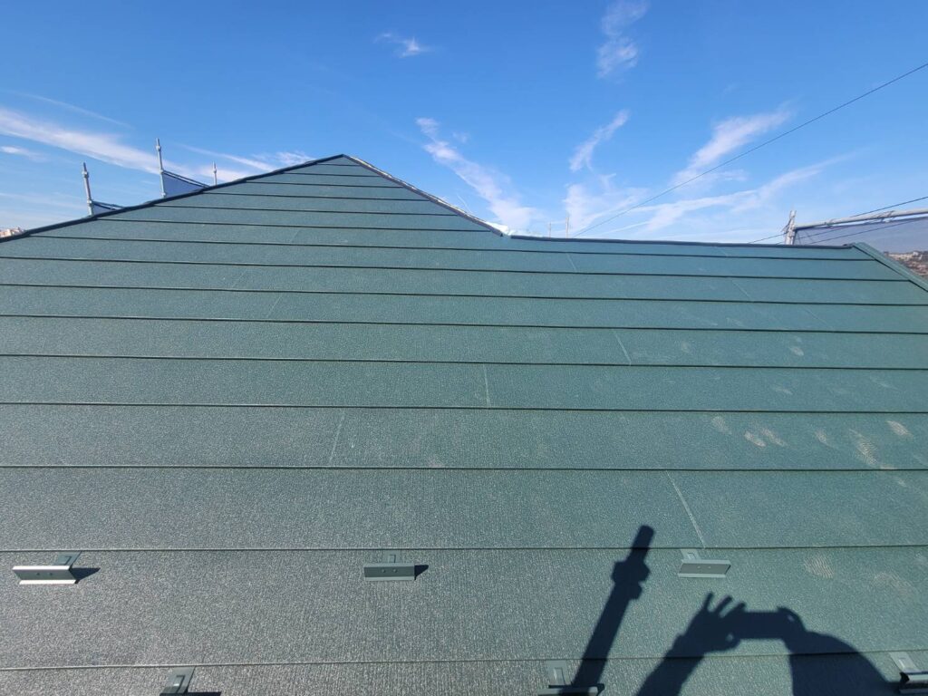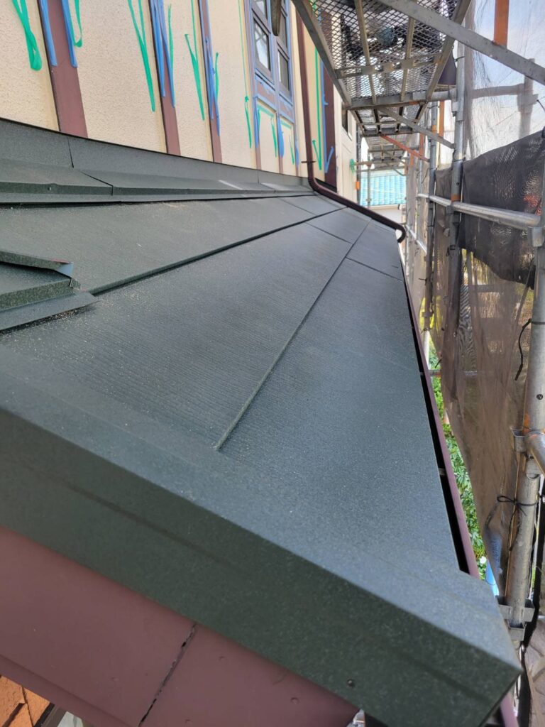 屋根を完全に葺き替える、葺き替え工事よりお手軽と言われるカバー工法ですが、ここまで綺麗になるとほぼ新品の屋根ですね!