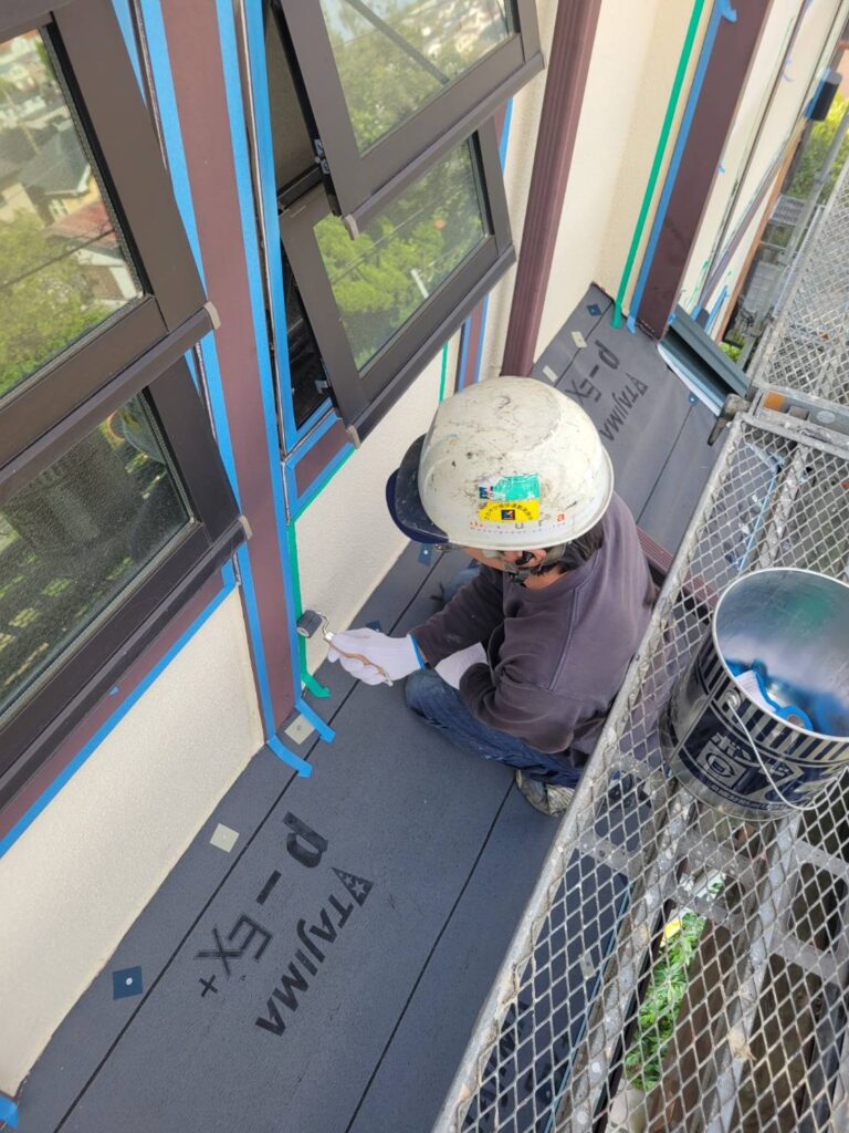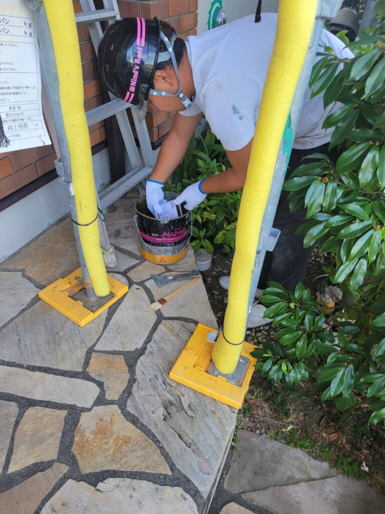 養生作業が終わった箇所からプライマーと呼ばれる液体を塗布します。