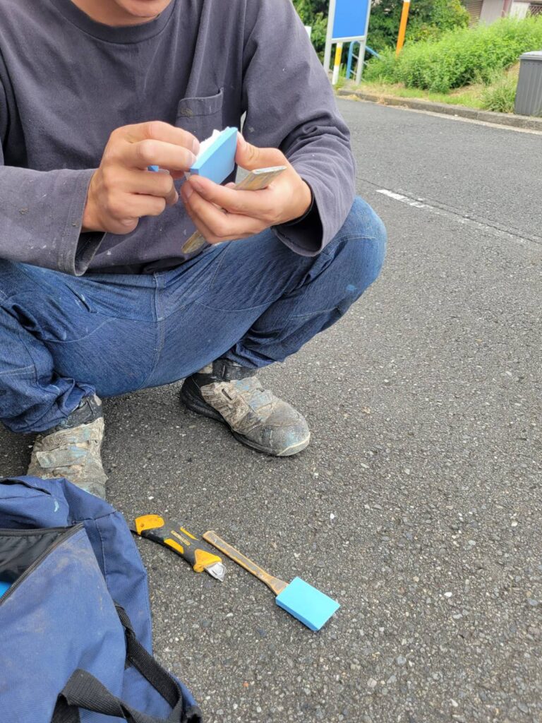打ち込んだコーキング剤を整えるためのヘラを作ります。