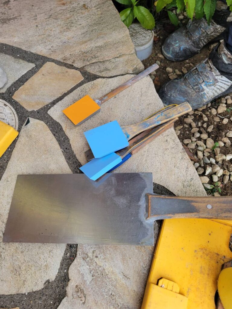 青とオレンジ色のゴム板は硬さが異なり施工する箇所によって使い分けるそうです!