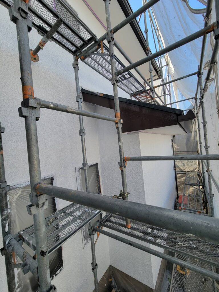 最後の写真では、中塗りが完了した外壁の状態をご確認いただけます。
