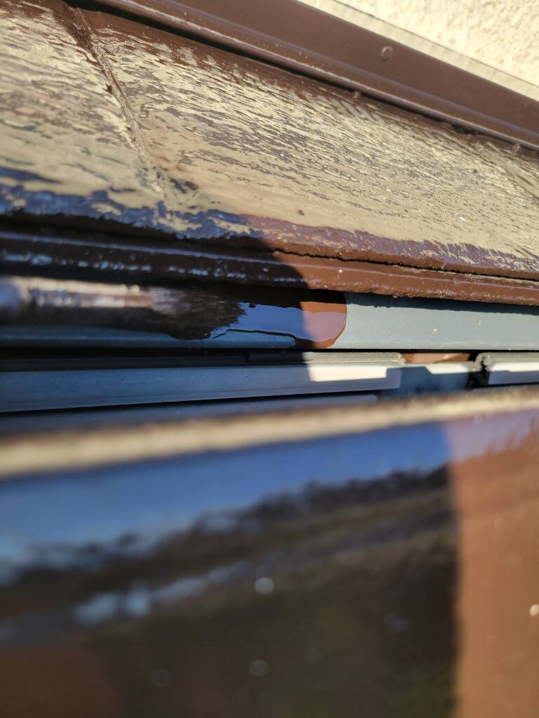 下屋根の軒先まわりは雨水が集まりやすく、風の影響も受けやすい場所であるため、鉄製の水切りは劣化が進みやすく、今回の現場でも錆の発生が見られました!