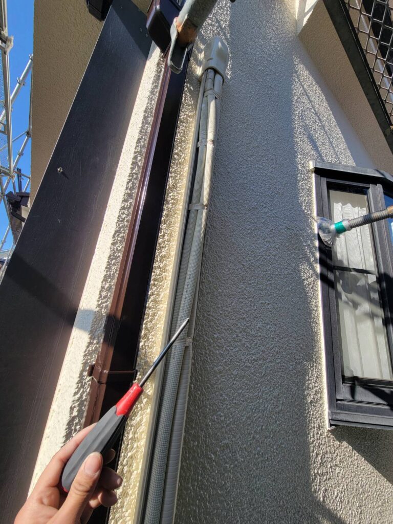 これはカバーの裏側や外壁との取り合い部分までしっかり塗装するためで、欠かせない作業です!