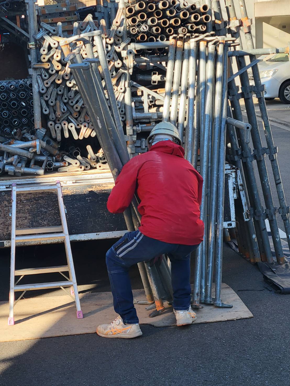 足場資材は金属製で重量もあるため、万が一ぶつけてしまうと傷や欠けの原因になります。
