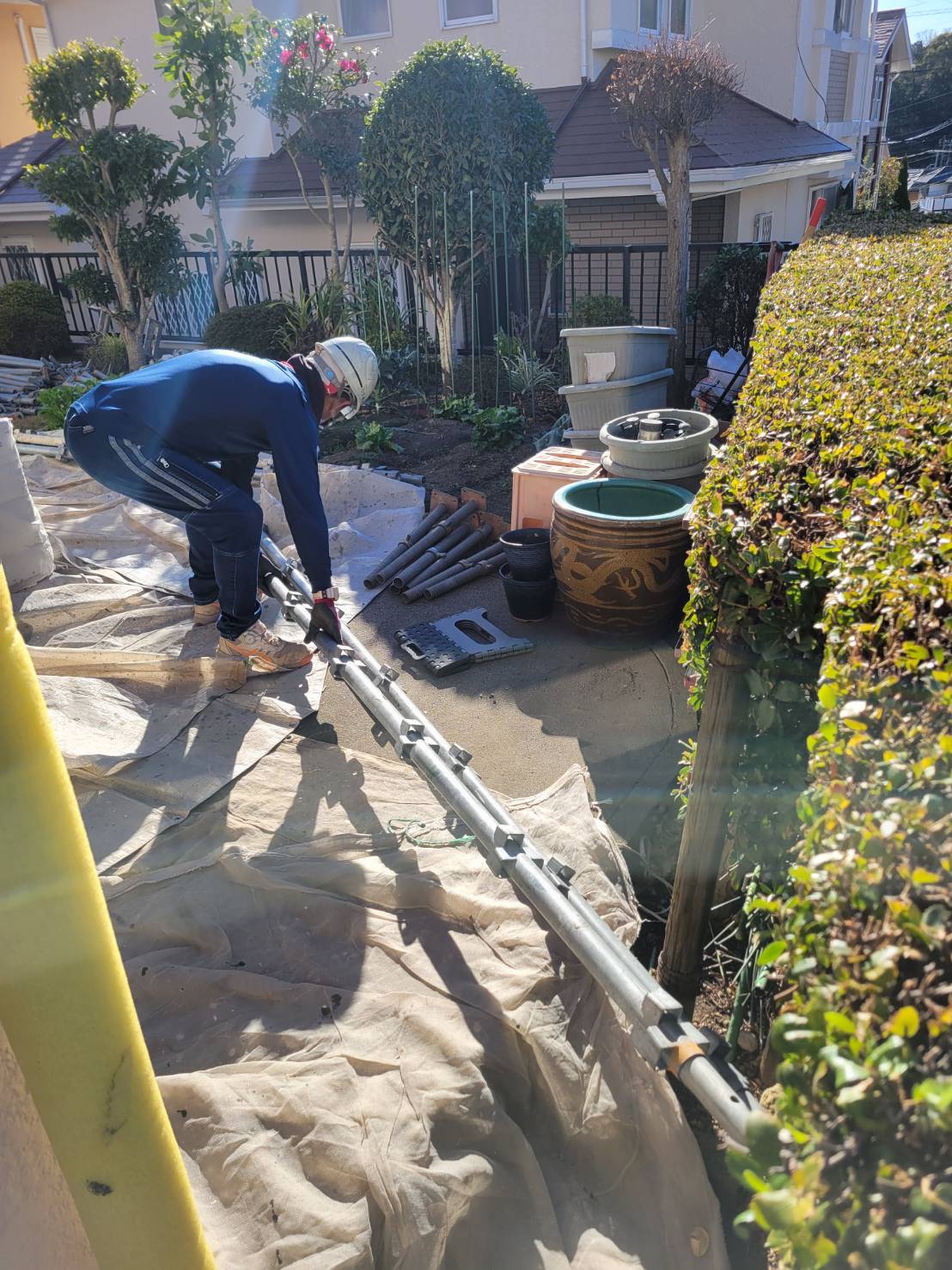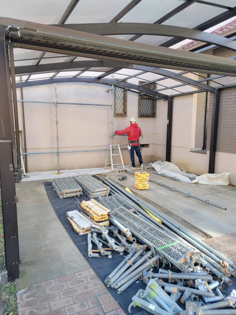 午後からはカーポートの上や住宅正面の足場の設置作業の予定です!
