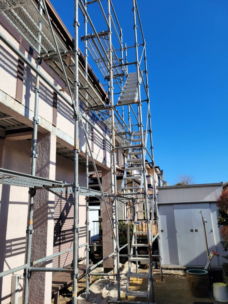 住宅の左手側から裏側にかけての足場を組み立てました!