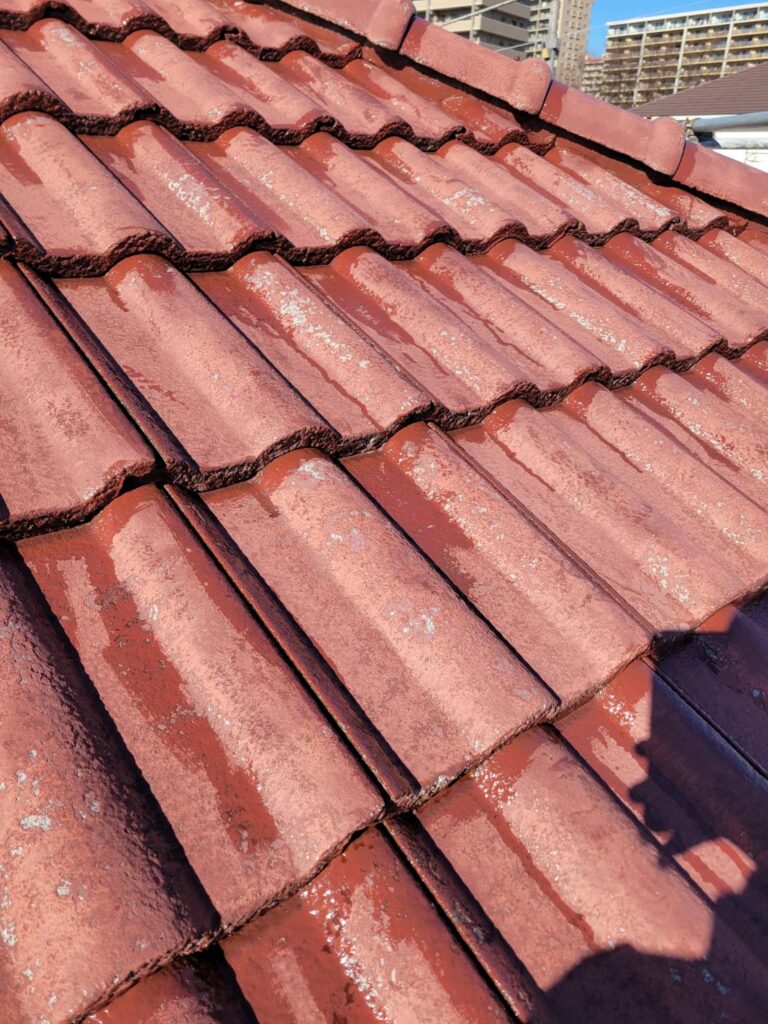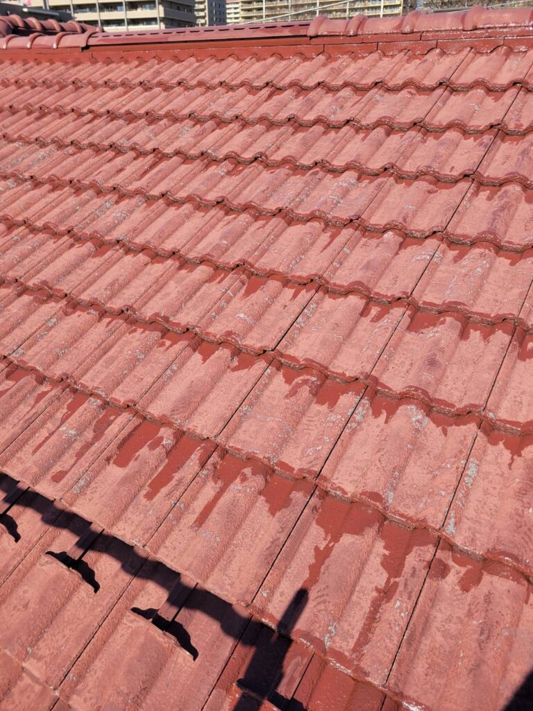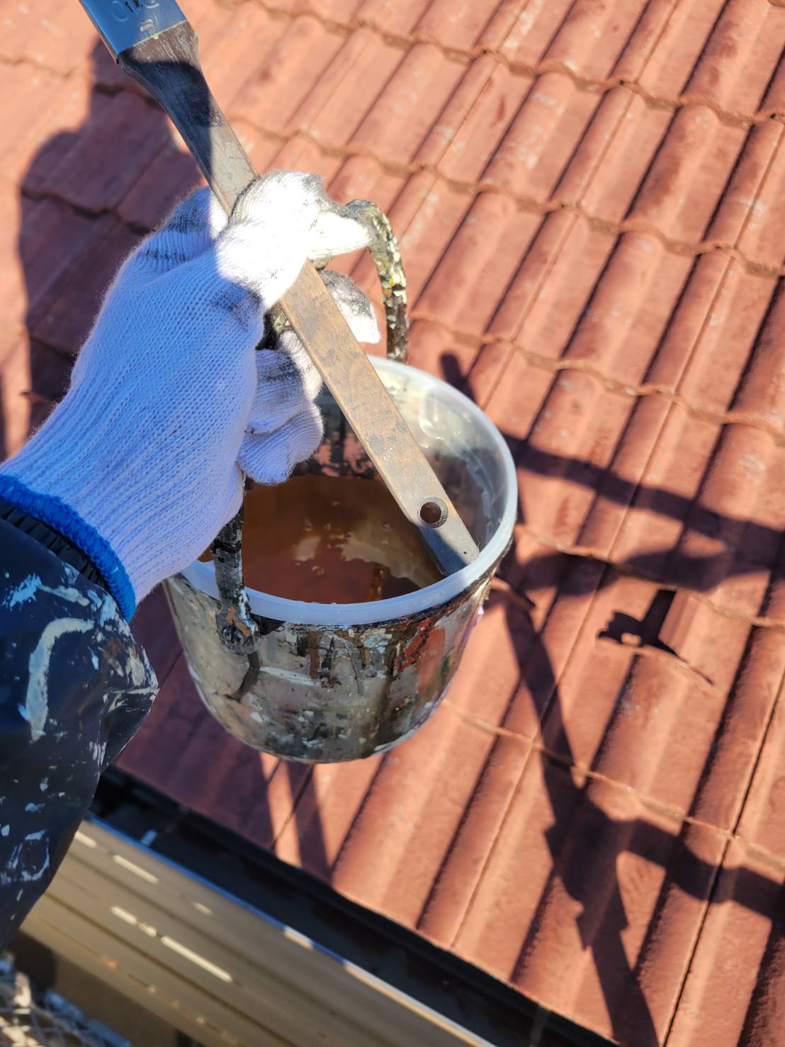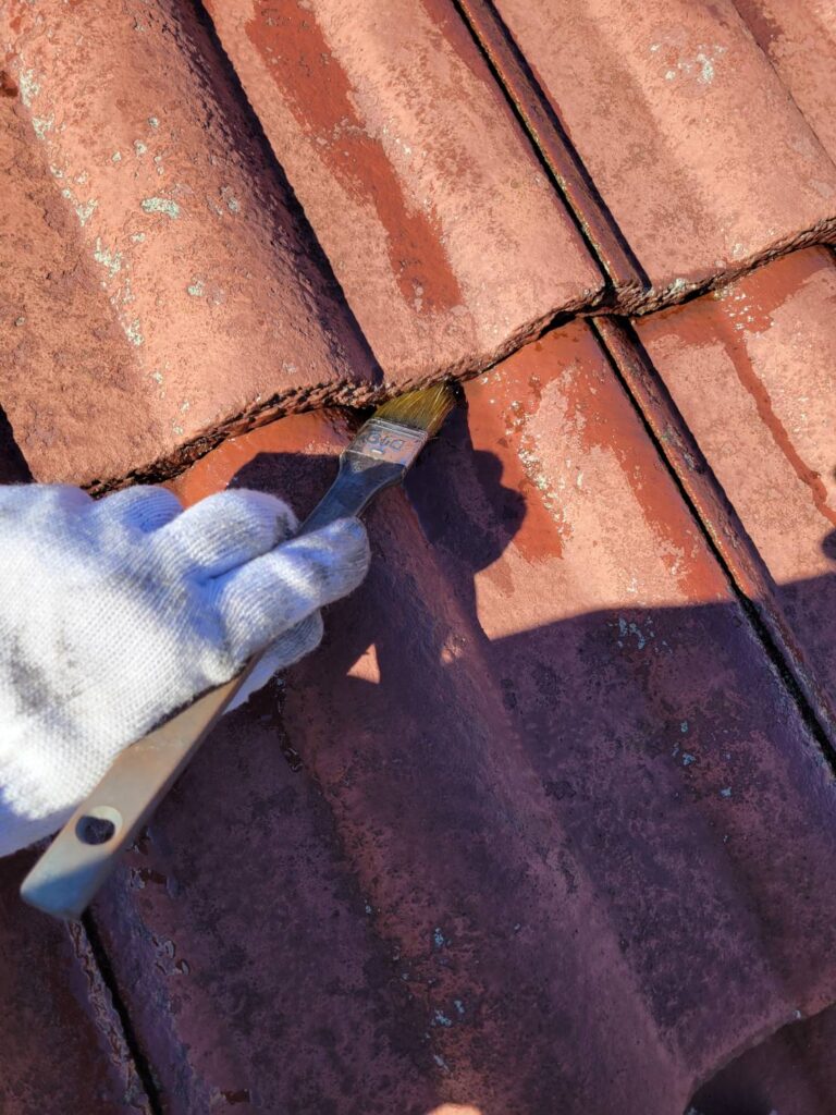 今回は、コンクリート瓦に対して刷毛を使った細かな作業を行いました!