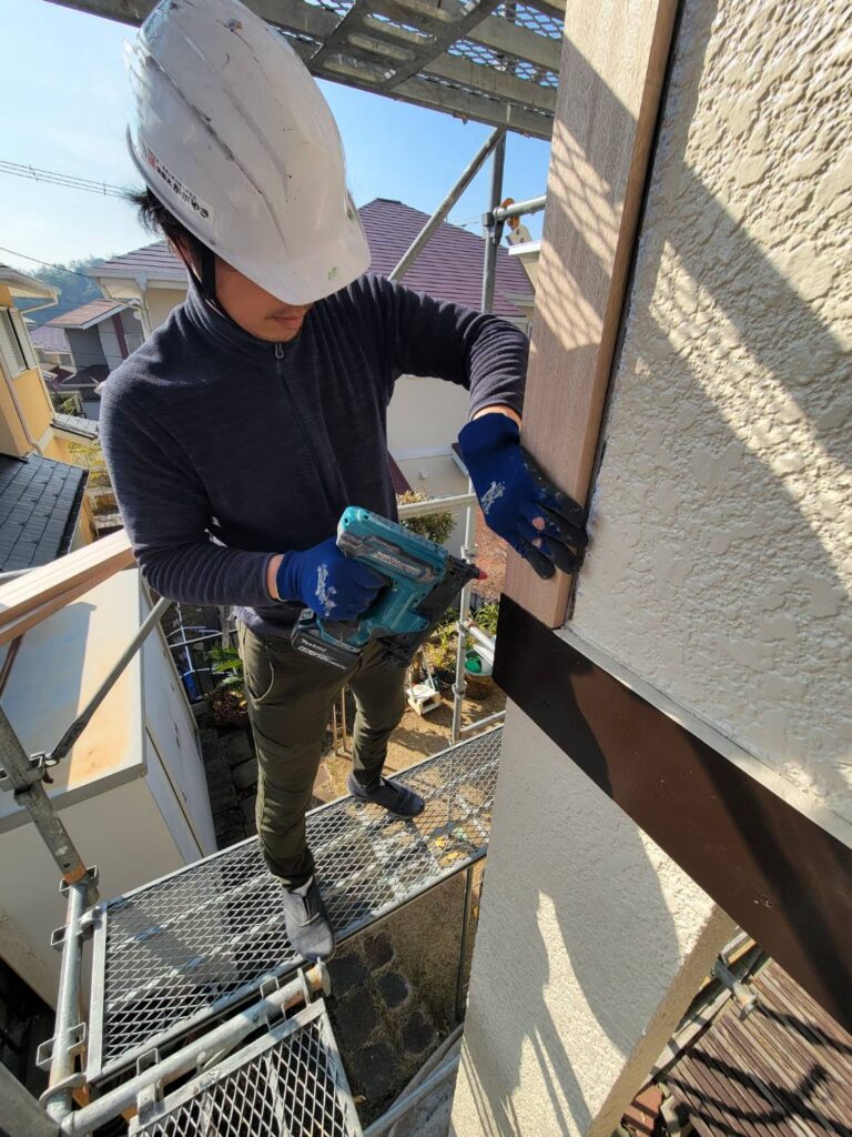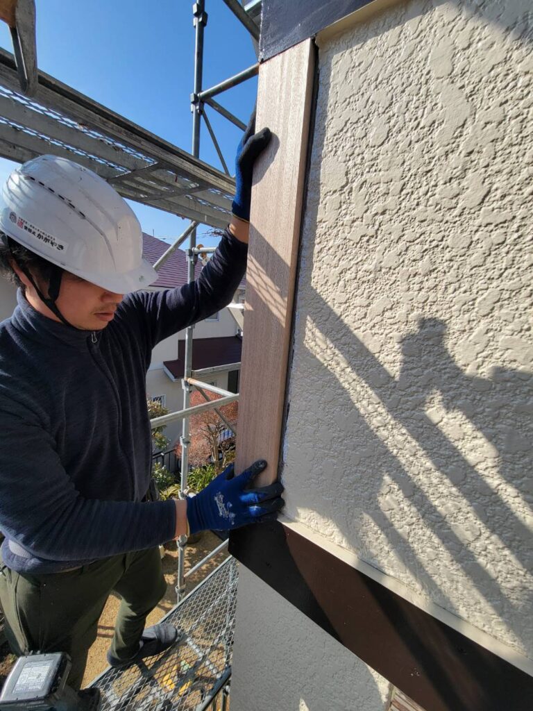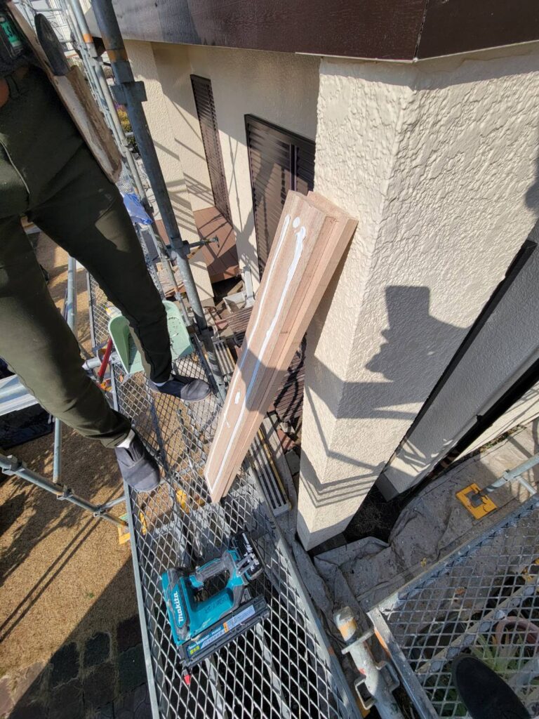 前回加工した羅盤材を今回はいよいよ外壁への取り付け工程です!