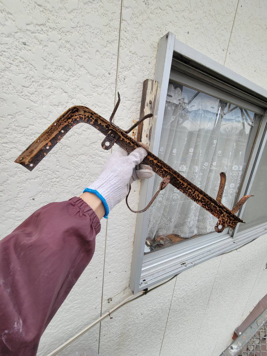 今回の現場では、外壁に設置されていた物干し竿掛けや窓の面格子を取り外しました!