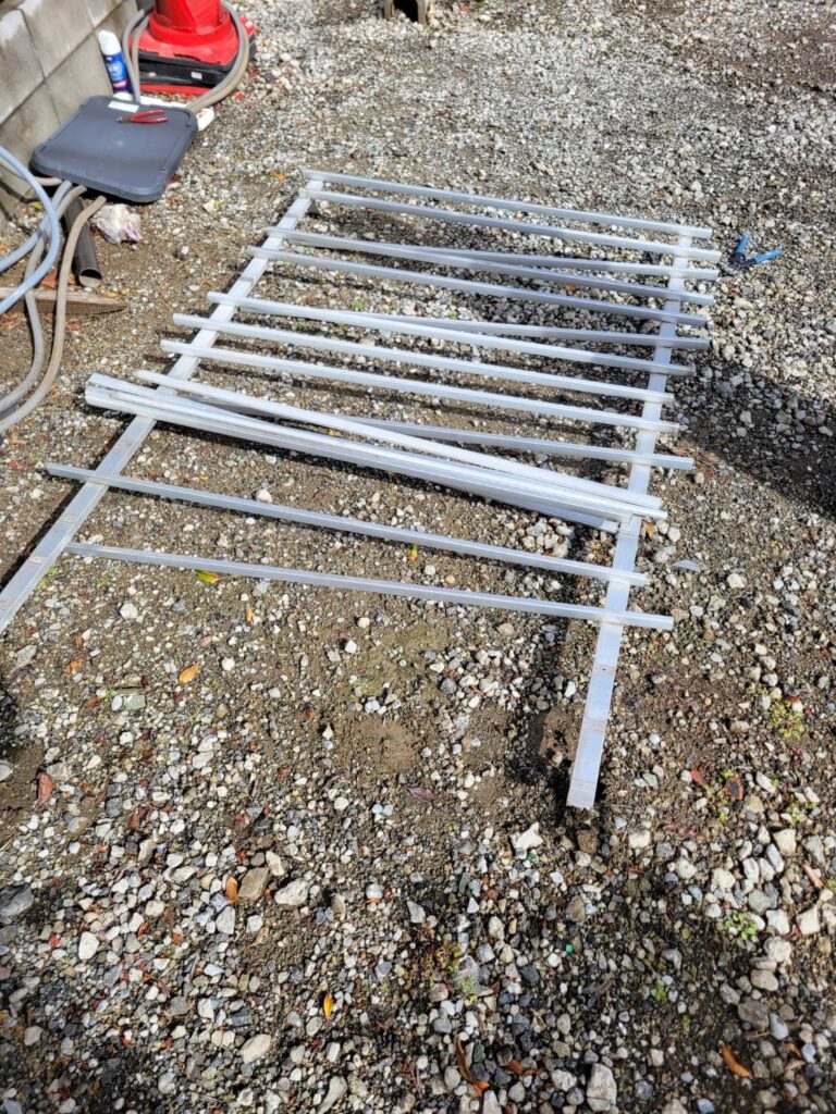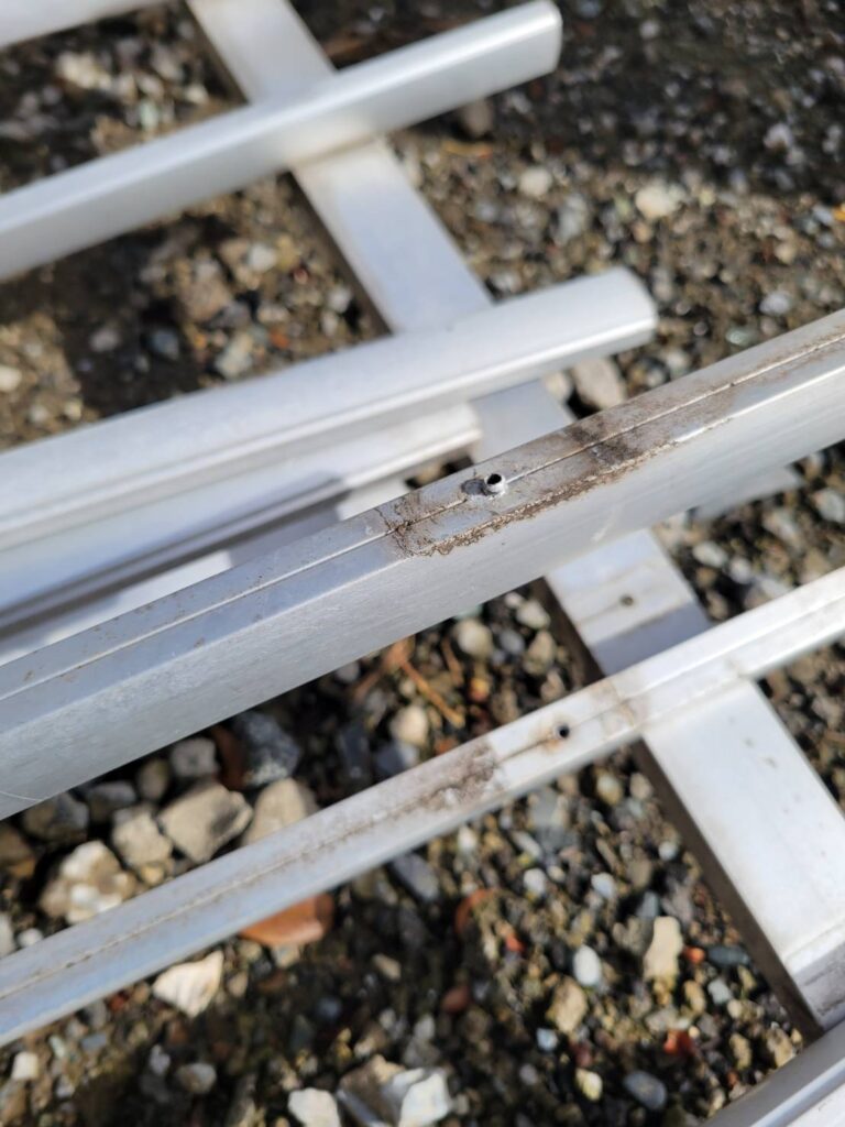 また、窓に取り付けられていた面格子についても取り外しを行いましたが、固定していたリベット部分が劣化しており、取り外しの際に部材が分解する状態となっていました!